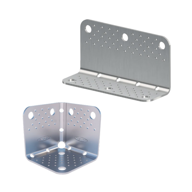 Der Systemwinkel CLT sowie die Systeminnenecke CLT sind speziell für den modularen CLT-Bau entwickelt und erleichtern die sichere Eck- sowie Knotenpunktmontage und Winkelverbindungen mit Brettsperrholz. Durch die robuste Konstruktion und die präzise Lochung werden Kräfte zuverlässig übertragen, während die einfache Handhabung eine schnelle und montagefreundliche Lösung bietet.