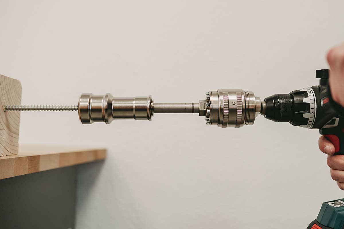 Beim Einschrauben langer Holzbauschrauben entstehen häufig hohe Drehmomente, die zu versehentlichem Abrutschen und Verkanten oder hohem Anpressdruck führen können. Mit dem Eurotec Einschraubwerkzeug wird für eine zuverlässige Übertragung gesorgt, die nicht nur kontrolliertes Einschrauben mit stabiler Führung des Schraubers sicherstellt, sondern auch präzises Arbeiten ohne großen Kraftaufwand. Das reduziert das Abrutschrisiko sowie die damit einhergehende Verletzungsgefahr und verbessert zusätzlich die Ergonomie bei täglichen Montagearbeiten.