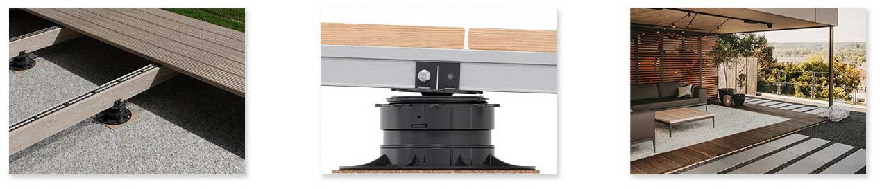 To create a slope (1–2%) and thus ensure easy water drainage, our self-levelling adjustable feet (e.g. SL PRO, SL BASE) are ideal.